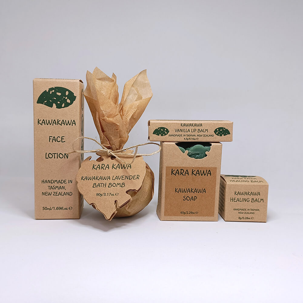 The packaging you receive has been thoughtfully designed and made to reflect the natural origins of the native Kawakawa.